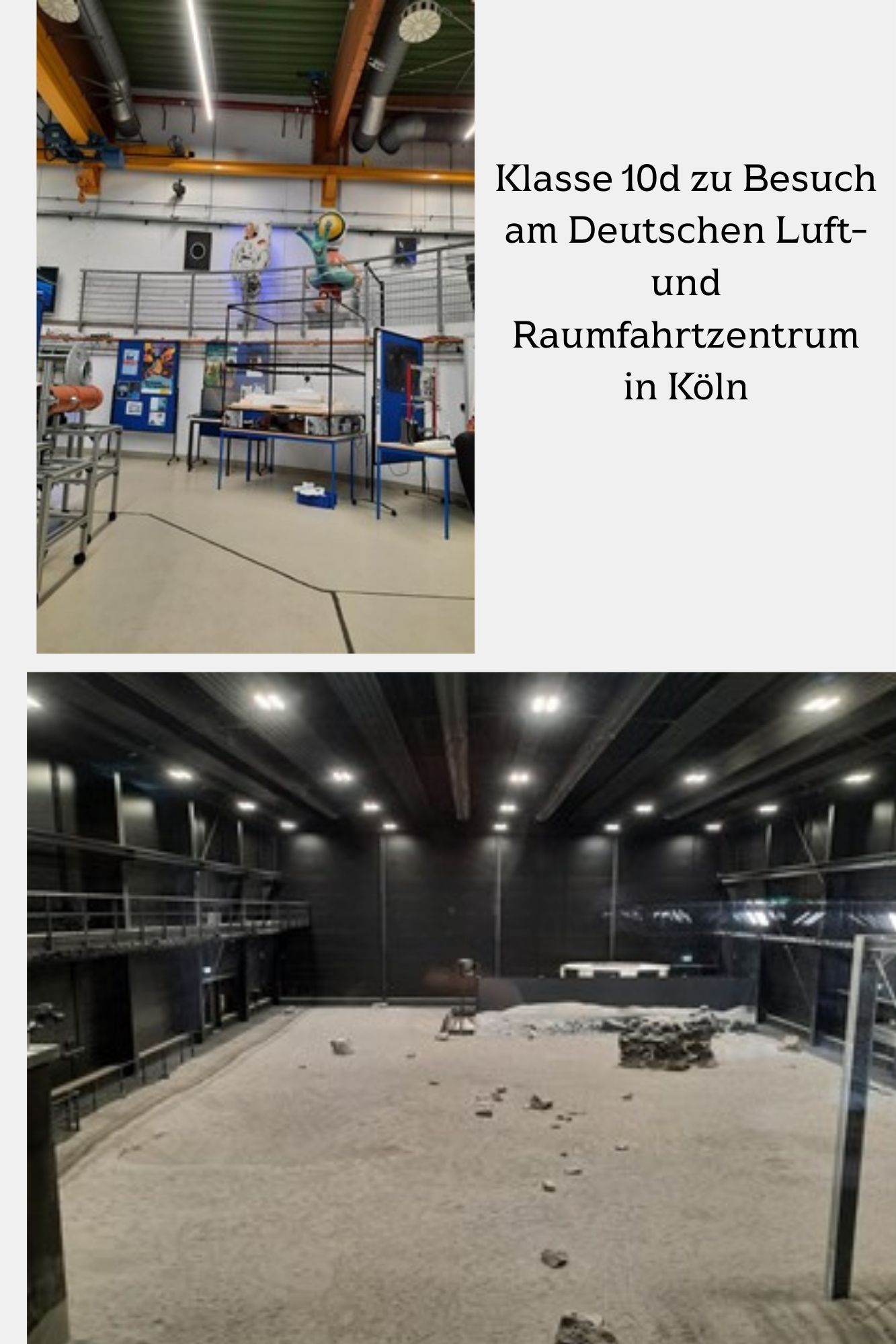 Im Februar hatte die Klasse 10d die besondere Gelegenheit, das Deutsches Zentrum für Luft- und Raumfahrt (DLR) in Köln zu besuchen. Der Ausflug bot uns spannende Einblicke in die Welt der Luft- und Raumfahrtforschung und zeigte eindrucksvoll, wie Wissenschaft und Technik in Deutschland auf höchstem Niveau betrieben werden. Das DLR ist die nationale Forschungseinrichtung für Luft- und Raumfahrt, Energie, Verkehr, Sicherheit und Digitalisierung.